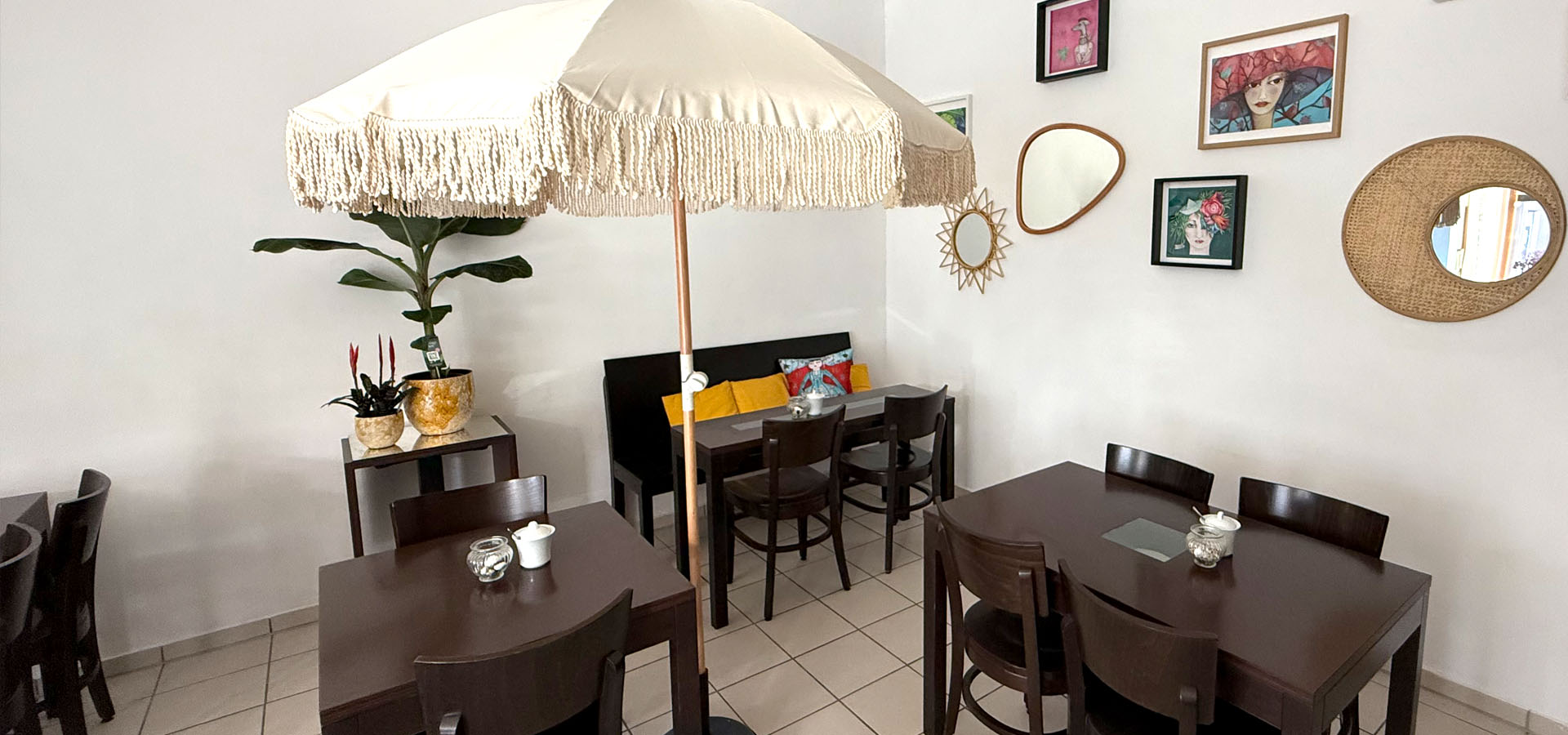 Hier erwartet dich eine liebevoll eingerichtete Wohlfühloase mit chilenischen Flair, sonnigen Farben, kunstvollen Details und verspieltem Charme. Die stilvollen Sonnenschirme, gemütlichen Sitzplätze und fantasievollen Bilder schaffen eine entspannte, inspirierende Atmosphäre – ideal für eine Auszeit vom Alltag.